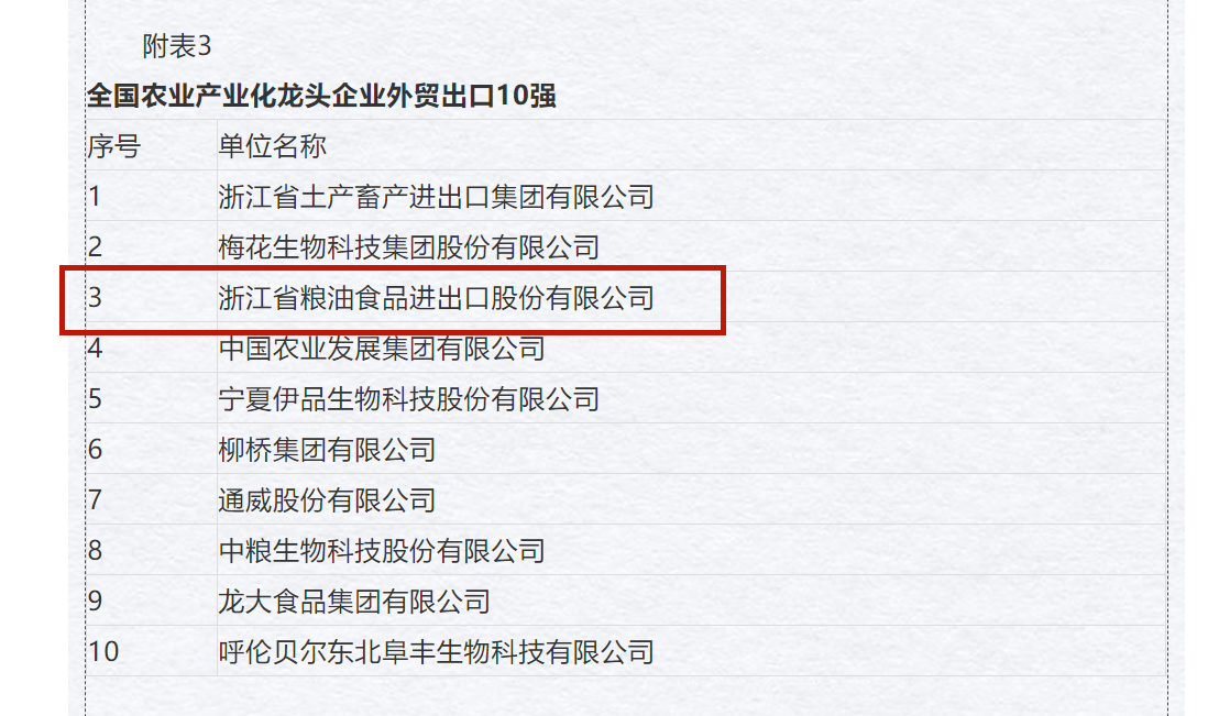 公司獲評2020年全國農(nóng)業(yè)產(chǎn)業(yè)化龍頭企業(yè)外貿(mào)出口10強